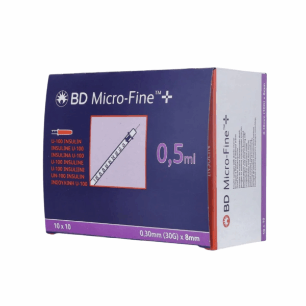 BD Micro Fine Plus 0.5ml U100 Syringe 30G is a sterile, non-toxic insulin syringe featuring a latex-free piston and attached bevelled needle. Designed for U100 insulin, it ensures reliable, comfortable dosing.
