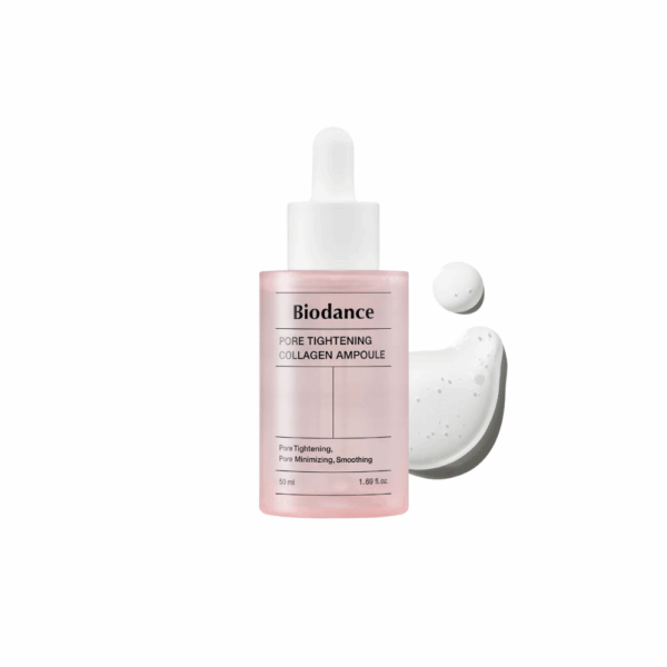 Biodance Pore Tightening Collagen Ampoule is a multi-action serum with 74% ultra-low molecular collagen to refine pores and enhance firmness. SYN-COLL peptide boosts collagen production while elastin and niacinamide improve elasticity and brightness. Clinical results show rapid pore reduction and increased collagen.