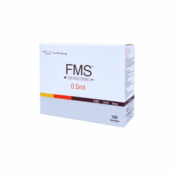FMS Fine Micro Syringe 0.5ml Pack x10 features 32G ultra-thin needles designed for smooth, low-trauma injections, suitable for toxins, fillers, mesotherapy and other aesthetic solutions.